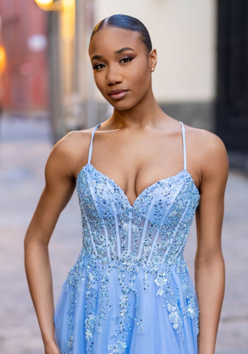Vestido de pedrería azul aciano · Ref.: Cristian Koehlert 2636