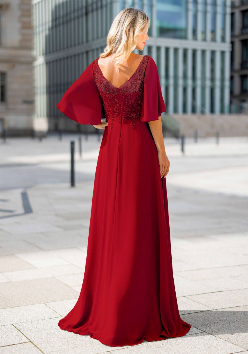 Vestido de pedrería rojo borgoña · Ref.: Cristian Koehlert 2638